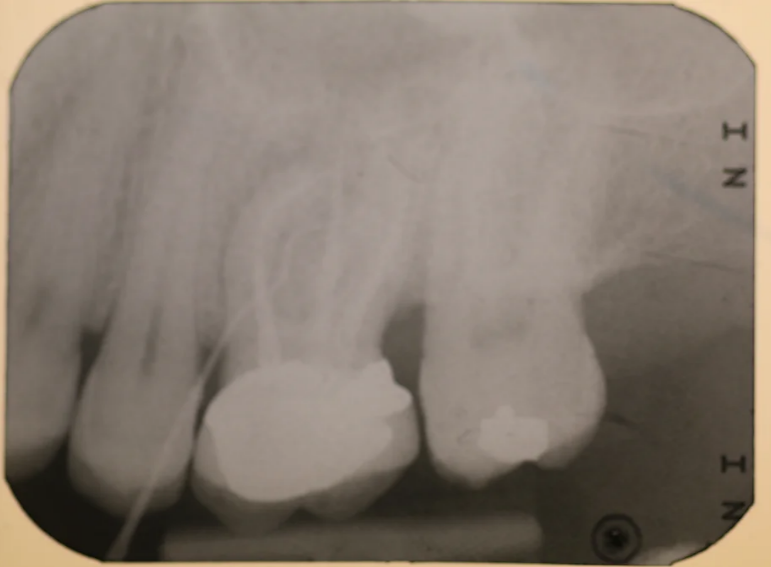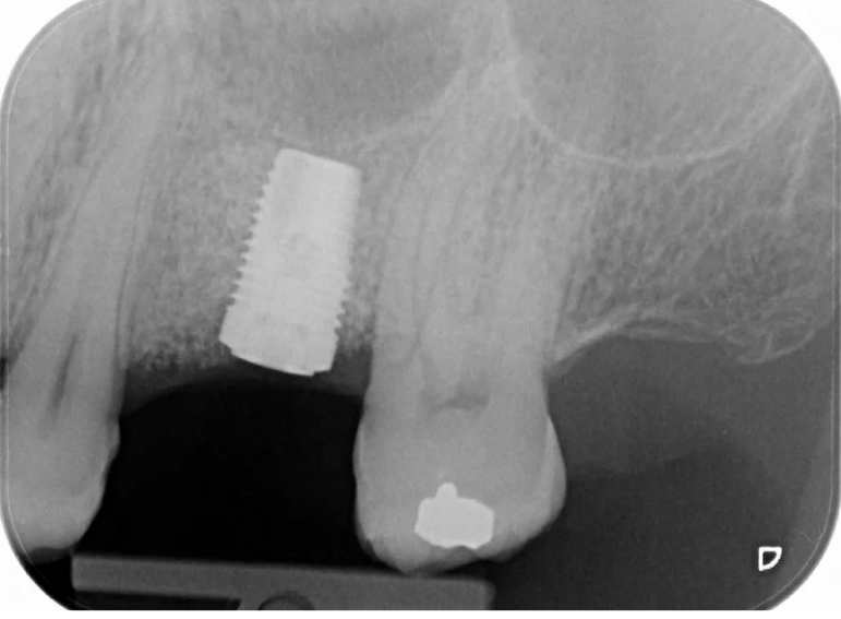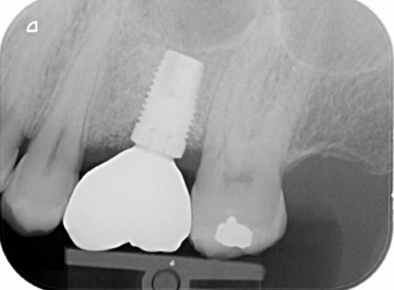 Molar with failed root filling replaced with an implant.