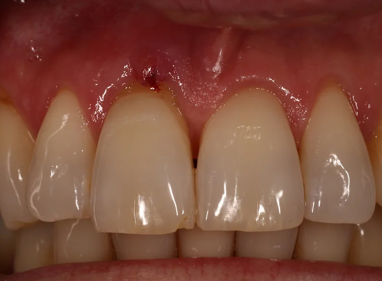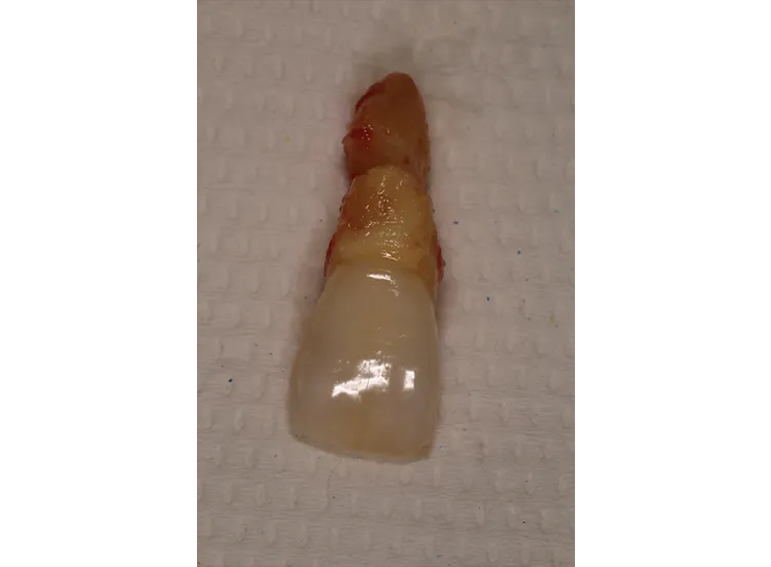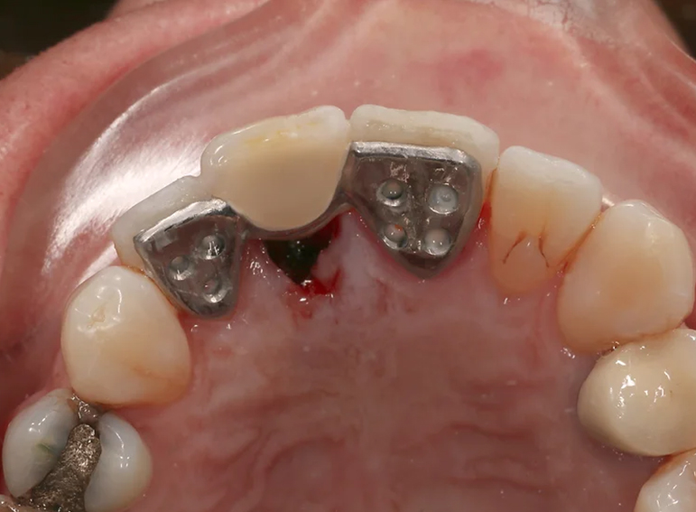 Extraction of a fractured incisor, temporary adhesive bridge and final adhesive bridge.