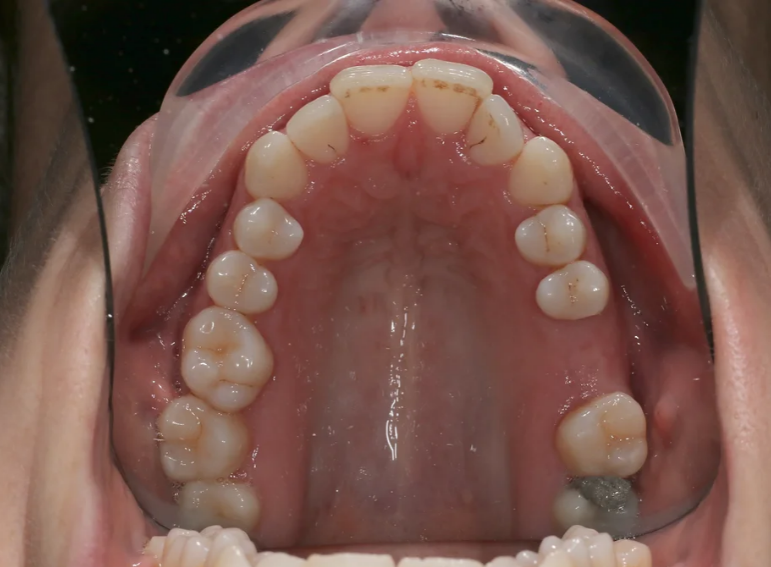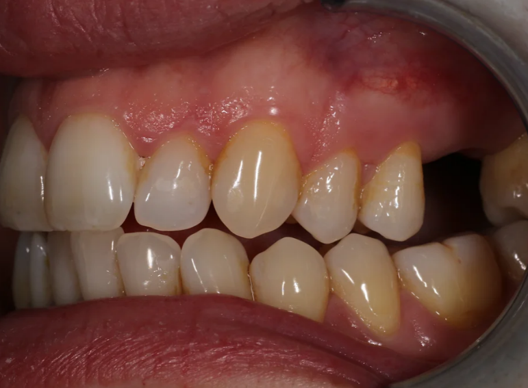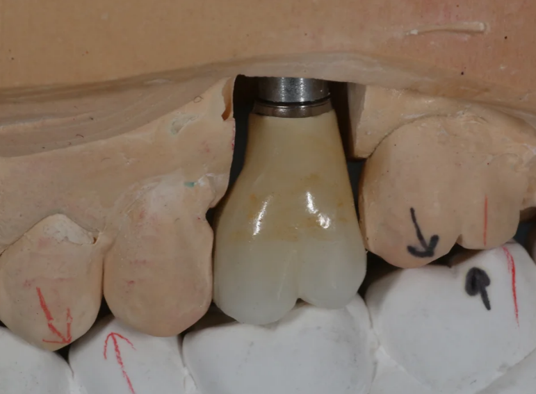 Missing upper premolar replaced with an implant.