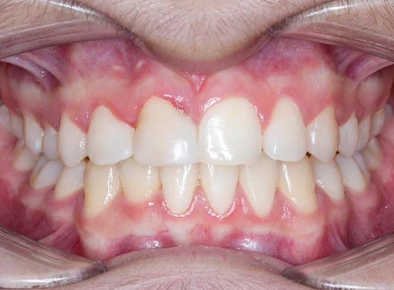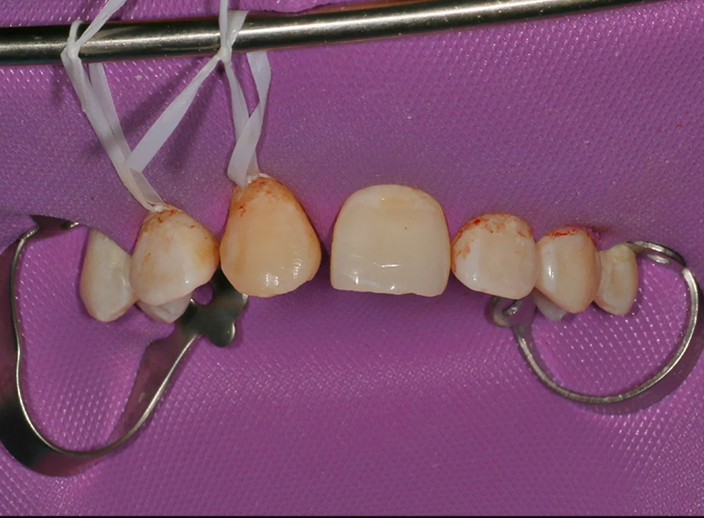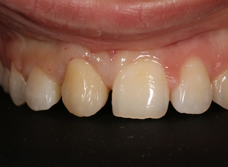 Composite restoration of an UR3 to resemble an UR1 following orthodontic treatment.