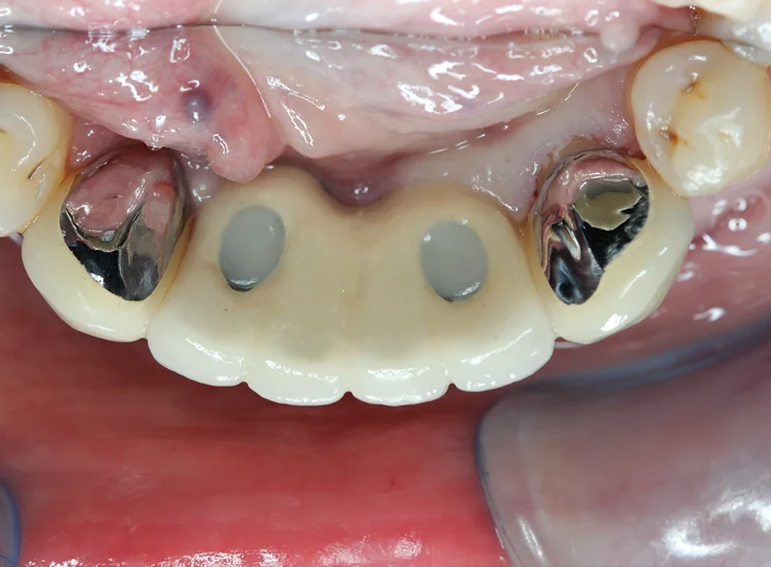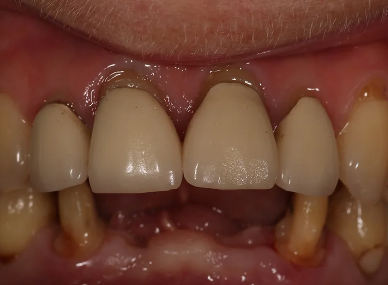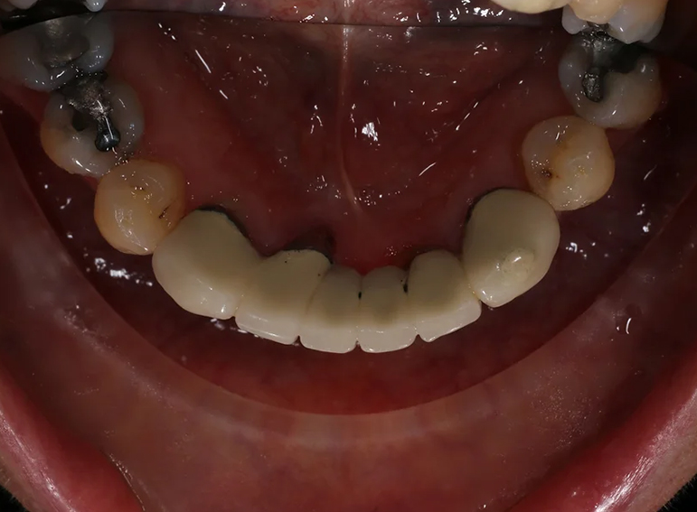 Removal of fractured lower bridge, 2 crowns, soft tissue surgery and 2 implants and a bridge.