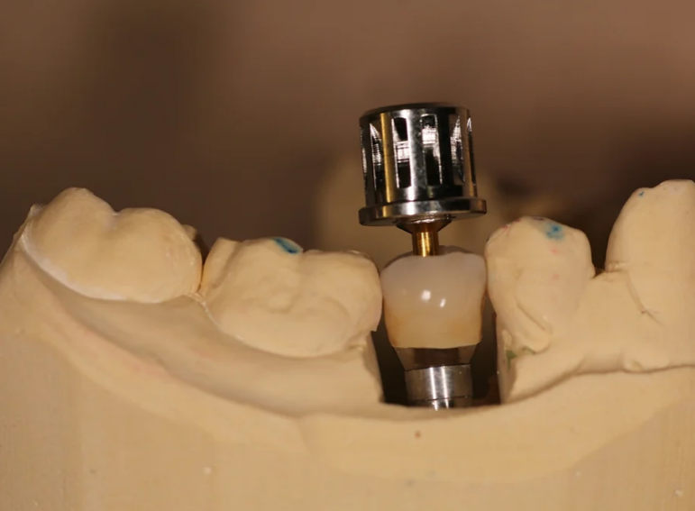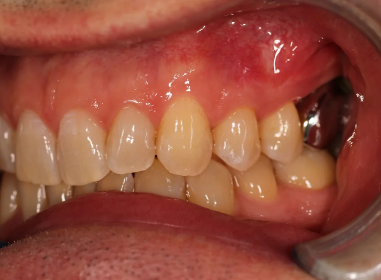 Missing lower premolar due to hypodontia replaced with an implant.