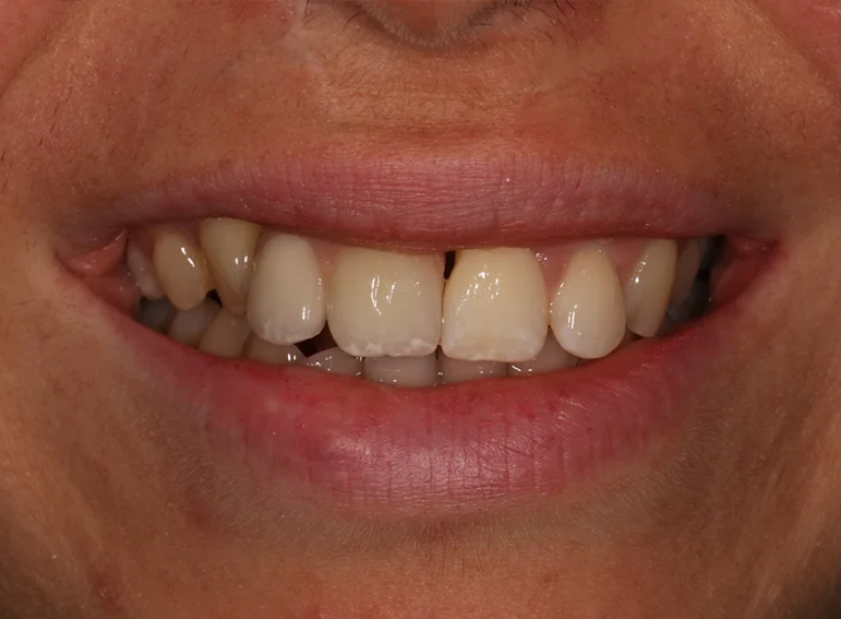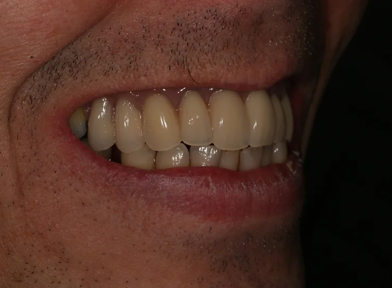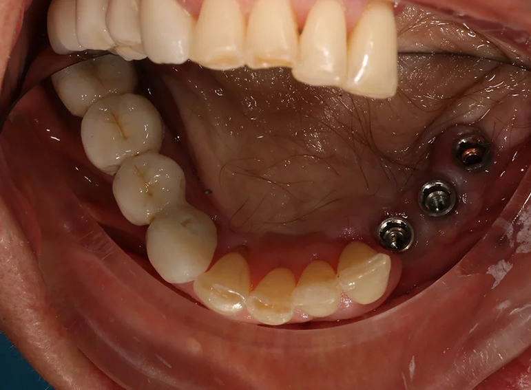 2 Implants and crowns after a road traffic accident and failed block graft.